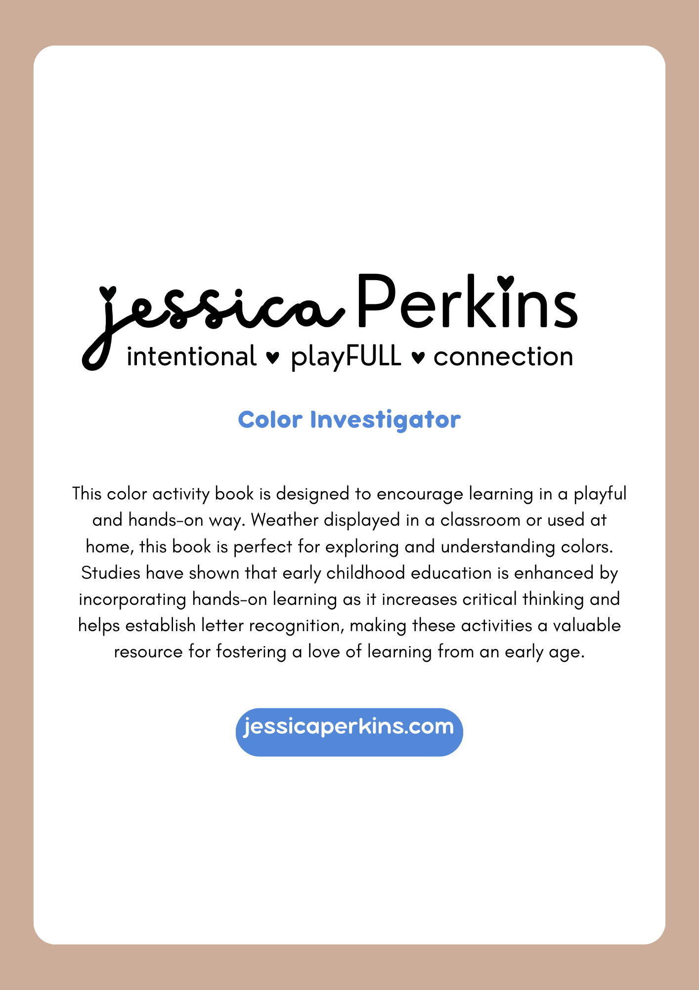 Whether displayed in a classroom or used at home, this book is perfect for exploring and understanding colors. Ideal for toddlers, preschoolers, and kindergarten learners. The activities are designed to encourage color recognition, sorting, matching, and vocabulary development.