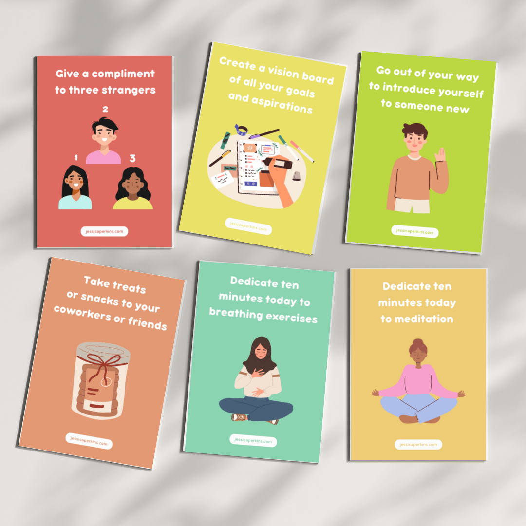 This guide offers a variety of prompts and ideas to inspire acts of kindness, and appreciation in everyday life. It’s designed to be simple, actionable, and encouraging, helping individuals incorporate small yet meaningful gestures into their daily routines. Whether used to inspire acts of service, express gratitude, or promote self-care, these cards serve as a daily reminder to spread positivity and build genuine connections with others. Research indicates that regular acts of kindness can boost overall happiness and well-being by up to 42%, making these cards an valuable tool for nurturing a more mindful and connected life.